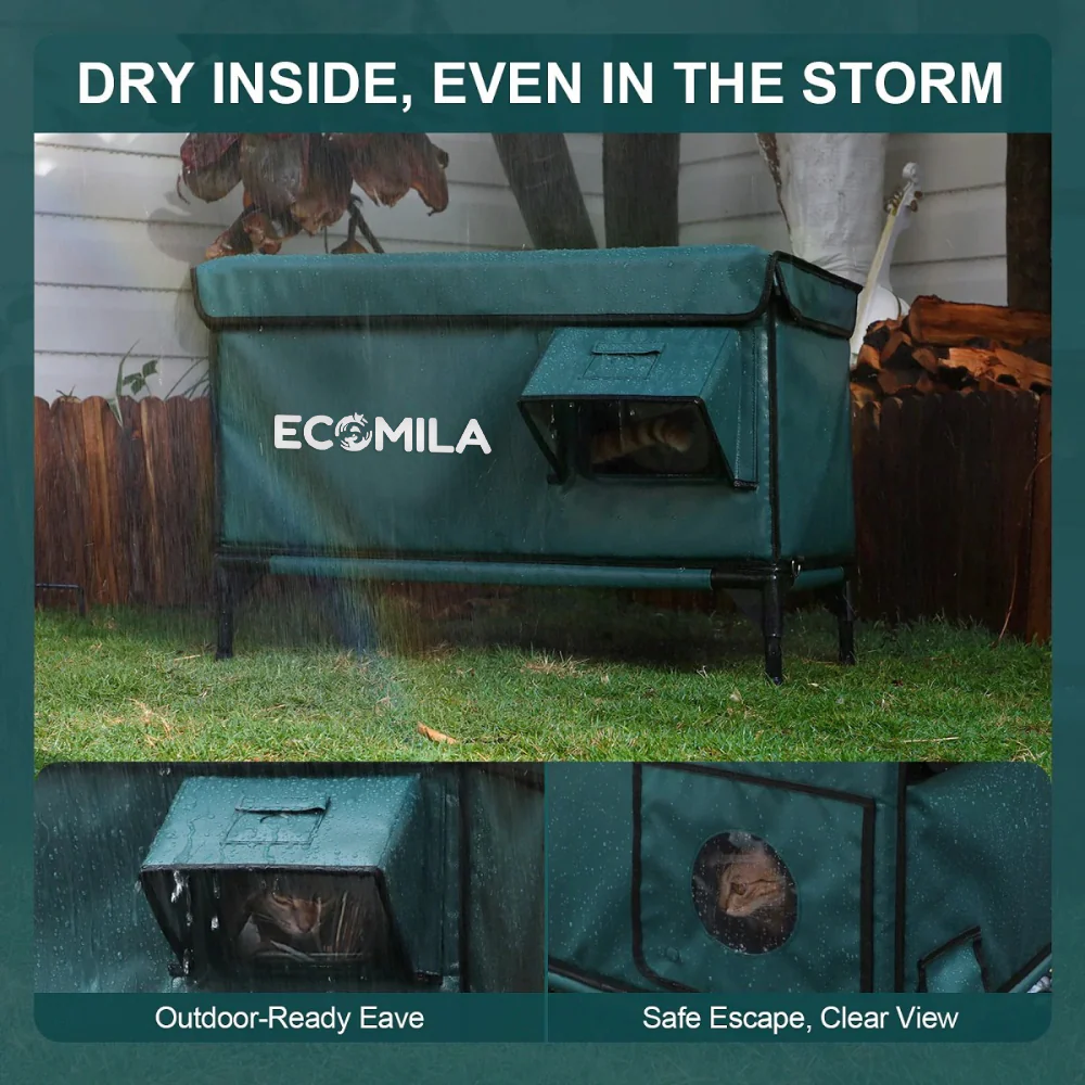 From icy winters and sudden cold snaps to gusty winds and stormy nights, this insulated heated shelter keeps your cat consistently safe and comfortable. The MET-certified heating pad provides pet-safe, steady warmth and automatically adjusts to maintain an ideal temperature, ensuring comfort even in the harshest conditions.